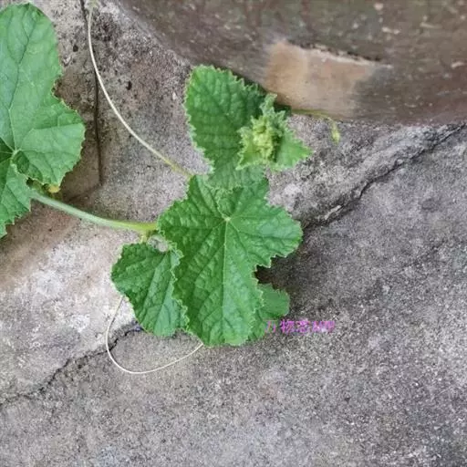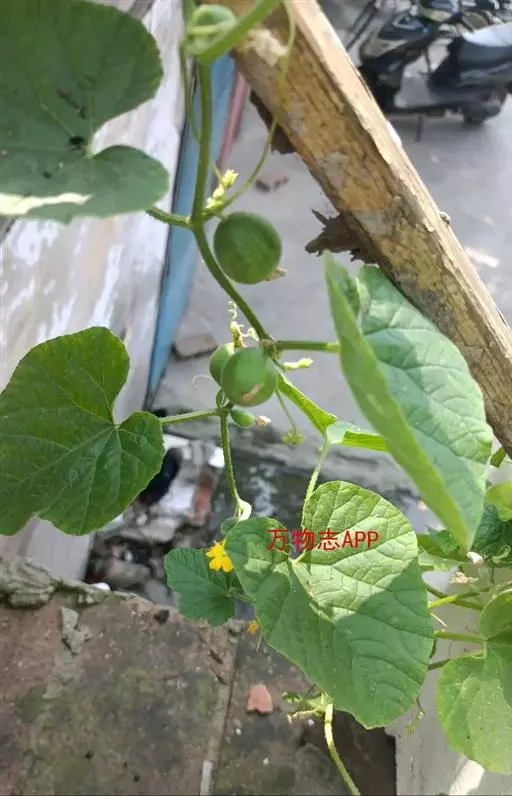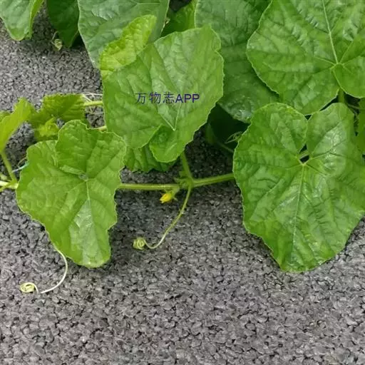 一年生匍匐或攀援草本;茎、枝有棱,有黄褐色或白色的糙硬毛和疣状突起。卷须纤细,单一,被微柔毛。叶柄长8-12厘米,具槽沟及短刚毛;叶片厚纸质,近圆形或肾形,长、宽均8-15厘米,上面粗糙,被白色糙硬毛,背面沿脉密被糙硬毛,边缘不分裂或3-7浅裂,裂片先端圆钝,有锯齿,基部截形或具半圆形的弯缺,具掌状脉。