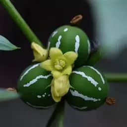果实的形状、颜色因品种而异,通常为球形或长椭圆形,果皮平滑,有纵沟纹,或斑纹,无刺状突起,果肉白色、黄色或绿色,有香甜味;种子污白色或黄白色,卵形或长圆形,先端尖,基部钝,表面光滑,无边缘。花果期夏季。