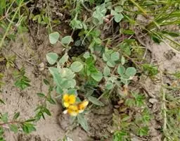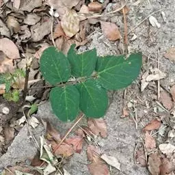 圆锥根系,幼茎有毛,开白花的幼茎绿色,开鲜红花的幼茎紫色,三出复叶,互生,复叶的叶柄长10-16cm,小叶的叶柄短,叶卵圆至棱形,全缘,叶面色绿,叶背灰白。腋生总状花序,花梗细长,有棱,着生小花的花轴比花梗长。小花对生。花冠大,色白或原红或鲜红,荚果略弯,成熟时褐黄色,每荚有种子2-4粒,多的可达9粒,种子宽肾形,凸扁,百粒重90-150g。粒色有单色及花色,脐大,长圆形,子叶浅黄多。