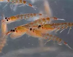 南极磷虾是一种生活在南冰洋的南极洲水域的磷虾。南极磷虾是似虾的无脊椎动物,并以群集方式生活,有时密度达到每立方米10000-30000只。它们以微小的浮游植物作为食物,从中将初级生产而来的能量,转化来维持其远洋带的生命周期。它们长成达6厘米长,寿命6年。它们是南极生态系统的关键物种,若以生物质能来说,它们可能是地球上最成功的动物物种 (大约共有5亿吨)。 主要集中于南冰洋。它们围绕着极地分布,最高密度是在大西洋区域。