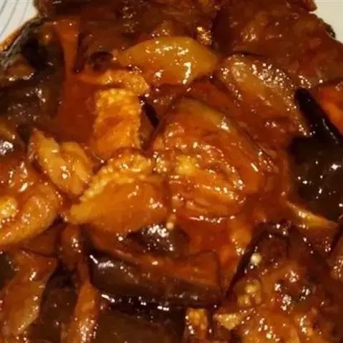 铁板茄子是一道美食,由茄子、猪肉、洋葱、姜、淀粉、大葱等制作而成,咸甜口味。不需铁板也可做铁板茄子。