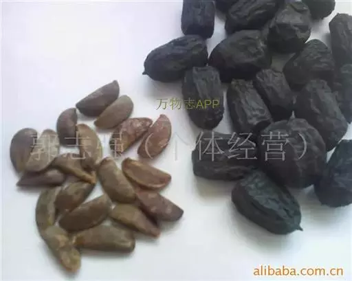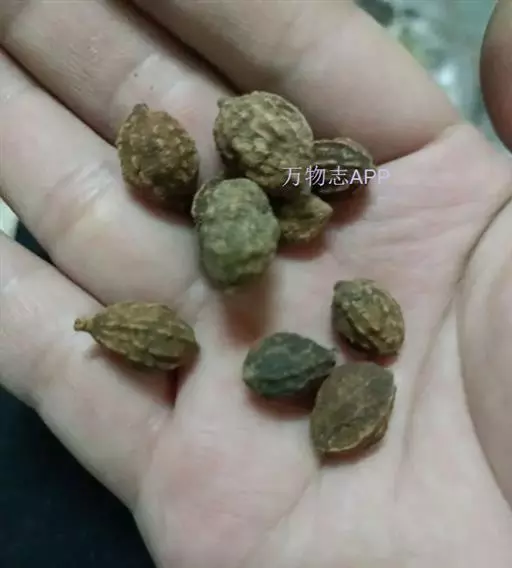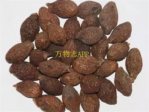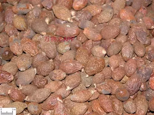 呈纺锤形或椭圆形,长2~3cm,直径1~1.5cm。先端钝圆,基部略尖而歪,具浅色的圆形种脐,表面棕色或暗棕色,微有光泽,具不规则的干缩皱纹。外层果皮极薄,质脆,易脱落。中层果皮较厚,黑褐色,质松易碎,遇水膨胀成海绵状。断面可见散在的树脂状小点。内层果皮可与中层果皮剥离,稍革质,内有2片肥厚胚乳,广卵形;子叶2枚,菲薄,紧贴于胚乳内侧,与胚乳等大。气微,味淡,嚼之有黏性。