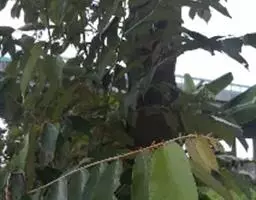 ②空中压条繁殖。选取已木栓化的枝条,在距离顶端20~30厘米处,进行环剥,环剥的宽度约3厘米,深度至木质部为止,并轻刮去形成层,以防剥口愈合。环剥后约经1~2天,待伤口稍干后,用湿椰糠或稻草裹湿泥包在伤口周围,再用塑料膜包裹,约经2个月左右便长出新根,新根若已开始木栓化时,便可将枝条剪下假植于沙地中,或直接定植于大田,成活率可达80%以上。