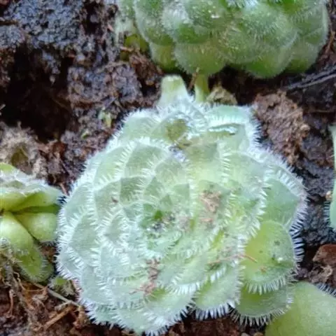 红缘莲花掌(Aeonium haworthi kwebb et Berth)属蔷薇目、景天科植物,原产大西洋的加那利群岛。质厚,蓝绿色,被白霜,叶缘红褐色。聚伞花序,花浅黄色,有时带红晕。