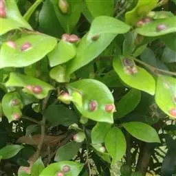 壳菜果已发现的病害病原物有19种,其中危害叶部的16种,危害茎枝的3种。常见病害有球毡病、角斑病、炭疽病、叶斑病等。