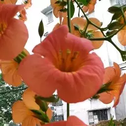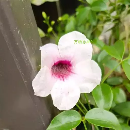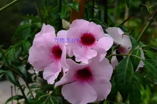 粉花凌霄,为紫葳科粉花凌霄属植物,有白花和红花等栽培品种。在适宜生长的温暖地带,可用于棚架、墙垣绿化,寒地可行盆栽。全株可入药。