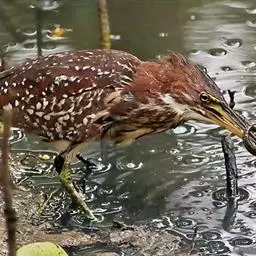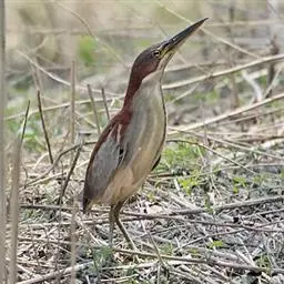 棕夜鹭是一种中型涉禽,身长56-66 cm。这是一个矮胖的鹭。黑色头冠,腿爪是明亮的黄肉桂色。…