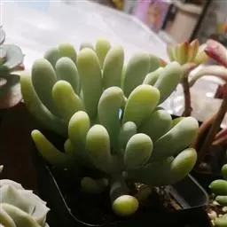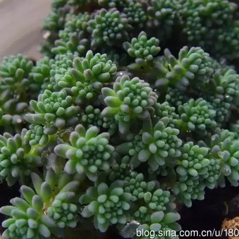 玉米石是景天科、景天属植物。多年生草本多浆植物。植株低矮丛生,多分枝。叶膨大成圆筒形、卵形或近小球形,…