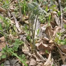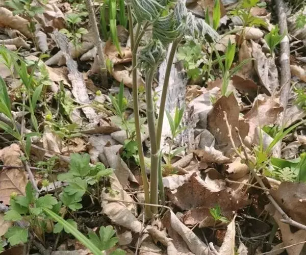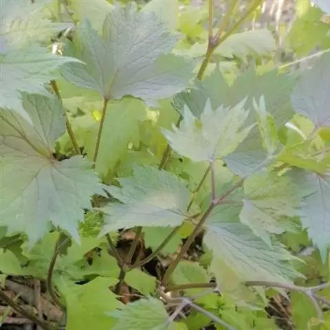 多年生草本。雌雄异株。根状茎粗壮,多弯曲,表面黑色,有许多下陷圆洞状的老茎残基。茎高达1米余,微有纵槽,无毛或微被毛。下部茎生叶为二回或三回三出复叶;叶片三角形,宽达22厘米;顶生小叶宽菱形,长5-10厘米,宽3.5-9厘米,三深裂,基部通常微心形或圆形,边缘有锯齿,侧生小叶长椭圆状卵形,稍斜,表面无毛,背面沿脉疏被柔毛;叶柄长达17厘米。茎上部叶似下部叶,但较小,具短柄。