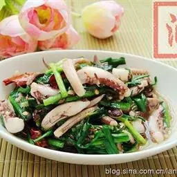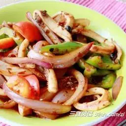 鱿鱼的切法:先从左角开始切,刀和鱿鱼呈45度的角,切那种连皮不要断刀的斜线就可以了;然后换反方向再…