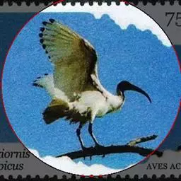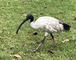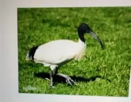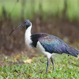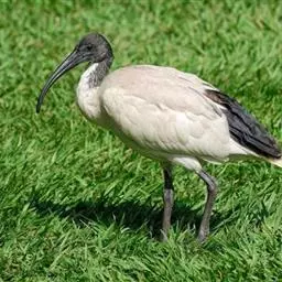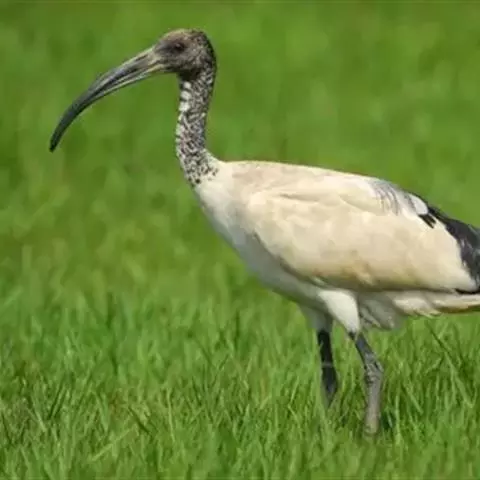 圣鹮头、颈黑色,身体白色,初级和次级飞羽尖端黑色。喙长且厚、黑色下弯,跗蹠与趾黑色。…