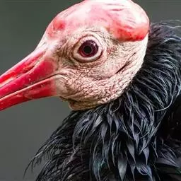 秃鹮主要分布在非洲中南部地区,生活在辽阔的草原及半沙 秃鹮 漠地区。秃鹦的外貌和色泽很美。它们的面部是红色的,与头部一样没有羽毛。鲜红的长嘴稍稍向下弯曲,头顶虽秃却长着鲜红色的肉冠。眼圈和头面两侧有白色皱褶,与红色的头顶和长嘴形成鲜明的对照。它们会在岩石间及山崖边的地盘繁殖,喜欢吃昆虫和其他细小的动物。