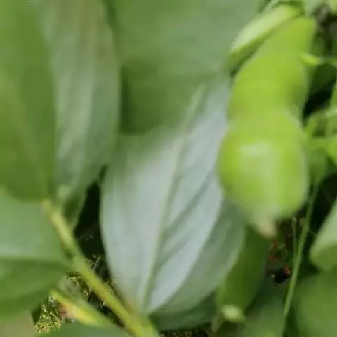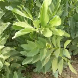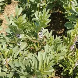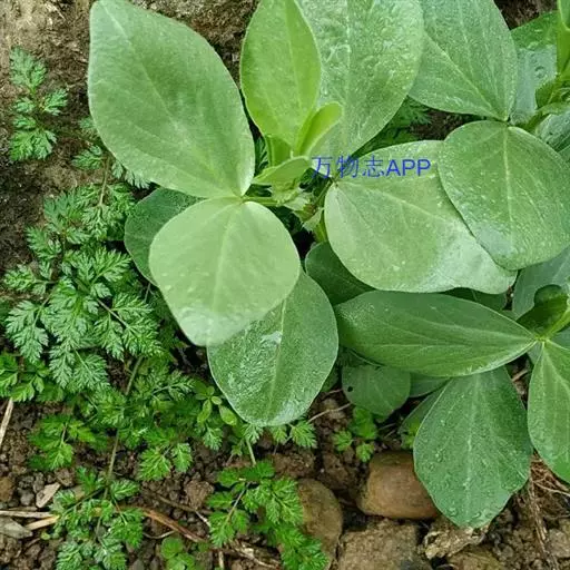 蚕豆 花越年或一年生草本,高30-180cm。茎直立,不分枝,无毛。偶数羽状复叶;托叶大,半箭头状,边缘白色膜质,具疏锯齿,无毛,叶轴顶端具退化卷须;小叶2-6枚,叶片椭圆形或广椭圆形至长形,长4-8cm,宽2.5-4cm,先端圆形或钝,具细尖,基部楔形,全缘。