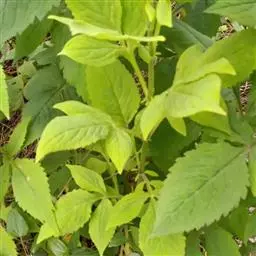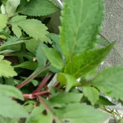 多年生草本,高50-100(120)厘米;地下根状茎长而横走,偶在地表匍匐生长;茎密被白色倒生粗毛或仅沿二叶柄相连的侧面具纵列倒生短粗伏毛,有时几无毛。基生叶丛生,叶片卵形、宽卵形或卵状披针形至长圆状披针形,长4-10(-25)厘米,宽2-5(-18)厘米,先端渐尖,边缘具粗钝齿,基部楔形下延,不分裂或大头羽状深裂,常有1-2(有3-4)对生裂片,叶柄较叶片稍长;茎生叶对生,与基生叶同形,或菱状卵形,先端尾状渐尖或渐尖,基部楔形下延,边缘具粗齿,上部叶较窄小,常不分裂,上面均鲜绿色或浓绿色,背面绿白色,两面被糙伏毛或近无毛;叶柄长1-3厘米,上部叶渐近无柄。