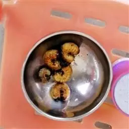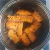 6.将松子放在油锅中,待熟后捞出,放小碗中。