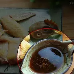 8.将番茄酱放入碗内加鲜汤、糖、香醋、酒、酱油、湿淀粉拌成调味汁。