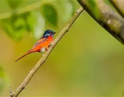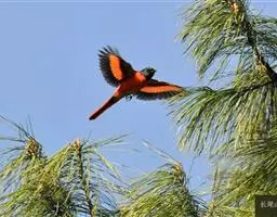 灰喉山椒鸟:共有8个亚种。体长18-22厘米。雄鸟头部和背亮黑色,腰、尾上覆羽和下体朱红色,…