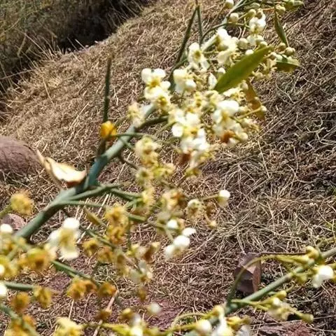 东北扁核木(学名:Prinsepia sinensis (Oliv.) Oliv. ex Bean)是蔷薇科扁核木属植物,小灌木,高约2米,多分枝;枝条灰绿色或紫褐色,无毛,皮成片状剥落;小枝红褐色,无毛,有稜条;枝刺直立或弯曲,刺长6-10毫米,通常不生叶。叶互生,稀丛生,叶片卵状披针形或披针形,极稀带形,先端急尖、渐尖或尾尖,基部近圆形或宽楔形,全缘或有稀疏锯齿。花1-4朵,簇生于叶腋;花梗长1-1.8厘米,无毛;花直径约1.5厘米。核果近球形或长圆形,红紫色或紫褐色,光滑无毛,萼片宿存;核坚硬,卵球形,微扁,有皱纹。花期3-4月,果期8月。