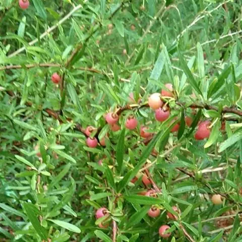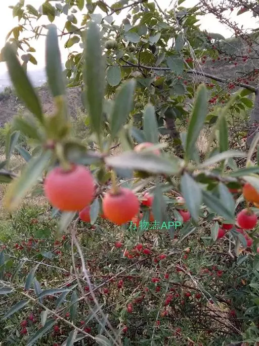 小灌木,高约2米,多分枝;枝条灰绿色或紫褐色,无毛,皮成片状剥落;小枝红褐色,无毛,有稜条;枝刺直立或弯曲,刺长6-10毫米,通常不生叶;冬芽小,卵圆形,先端急尖,紫红色,外面有毛。叶互生,稀丛生,叶片卵状披针形或披针形,极稀带形,长3-6.5厘米,宽6-20毫米,先端急尖、渐尖或尾尖,基部近圆形或宽楔形,全缘或有稀疏锯齿,上面深绿色,叶脉下陷,下面淡绿色,叶脉突起,两面无毛或有少数睫毛;叶柄长5-10毫米,无毛;托叶小,膜质,披针形,先端渐尖,全缘,内面有毛,脱落。