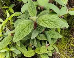 幼枝、叶柄和花序均被由黄褐色簇状毛组成的绒毛;叶干后至少上面变灰黑色至黑色,有8-9对侧脉,下面脉腋有发达的集聚簇状毛,花序下的一对叶常中下部最宽。