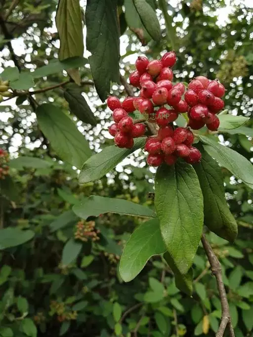 果实红色,椭圆状卵圆形,长7-8毫米;核扁,卵形,长6-8毫米,直径5-6毫米,有3条浅腹沟和2条浅背沟。花期5-6月,果熟期9-11月。