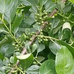 长叶冻绿(学名:Rhamnus crenata Sieb. et Zucc.)是鼠李科鼠李属植物。落叶灌木或小乔木,高达7米;幼枝带红色,被毛,后脱落,小枝被疏柔毛。叶纸质,倒卵状椭圆形、椭圆形或倒卵形,稀倒披针状椭圆形或长圆形。花数个或10余个密集成腋生聚伞花序,总花梗长4-10,稀15毫米。核果球形或倒卵状球形,绿色或红色;种子无沟。花期5-8月,果期8-10月。