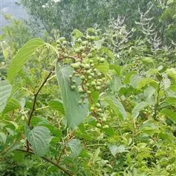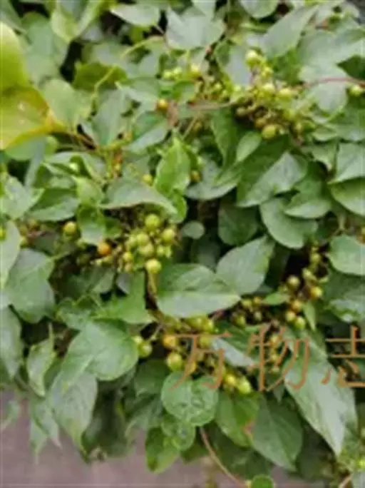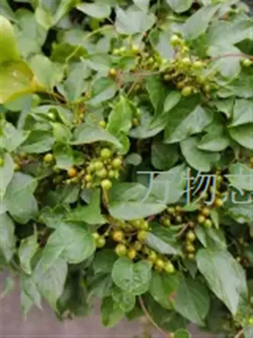 刺苞南蛇藤(学名:Celastrus flagellaris Rupr.):卫矛科南蛇藤属藤状灌木。小枝光滑,叶阔椭圆形或卵状阔椭圆形,稀倒卵椭圆圈,叶主脉上具细疏短毛或近无毛;叶柄细长,聚伞花序腋生,花序近无梗,雄花萼片长方形,花瓣长方窄倒卵形,花盘浅杯状,顶端近平截,子房球状。蒴果球状,种子近椭圆状,4-5月开花,8-9月结果。