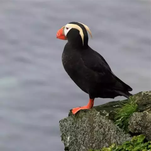 角嘴海雀,是海雀科、角嘴海雀属的中型海鸟,体长32-41厘米,嘴短而粗呈圆锥状、橙色。夏羽上嘴基部…