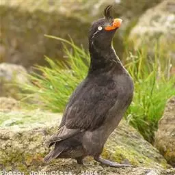 凤头海雀:是鸟纲、鸻形目、海雀科的一种海鸟。体重211-322克,体长18-20厘米。前趾间有蹼膜,…