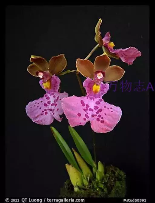 豹斑文心兰(O.Pardinum),花鲜黄色,具棕色斑纹。