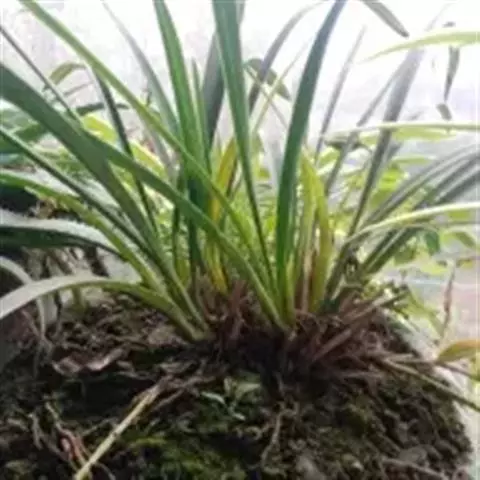 小苗经过3~4个月后,长至4~6个假鳞茎,根系密集,并有部分根长出盆外,此时应换盆。换盆时先将小苗脱盆放于装有少量木炭快垫底的塑盆中,再加适量木炭块于植株四周,