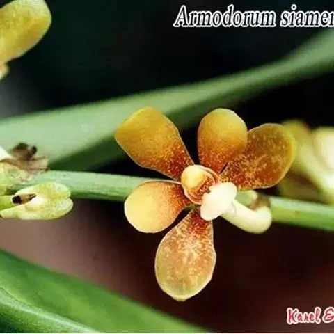 小金蝶兰(O.varicosum),花黄绿色,花径3厘米。
