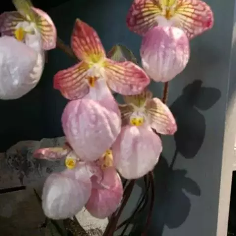 当中苗经过5~6个月后,长至6~8个假鳞茎,根系将木炭块很好包住,此时应为中苗换盆。