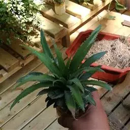换盆:种植4个月后便需换盆,换盆时,先在盆底放一层介质,再把凤梨植株从小盆中连土取出,放在盆中央,周围放入介质,轻压以确保植株直立,同样介质不宜压得太紧,以确保良好的透气性。种植深度以3至4厘米为宜。换盆后立即浇透清水,一个月后便可浇肥。