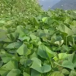 红薯叶(多年生蔓性草本植物)又称地瓜叶,即红薯生长过程中的茎上的叶子。红薯叶有很多用途,比如有提高免疫力,保护视力,延缓衰老,解毒等作用。一般食用的是秋天红薯成熟后地上秧茎顶端的嫩叶。