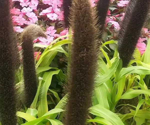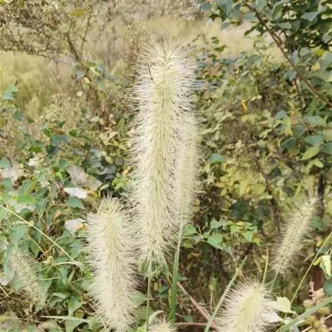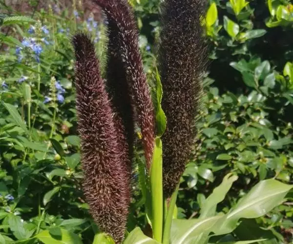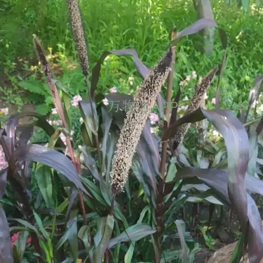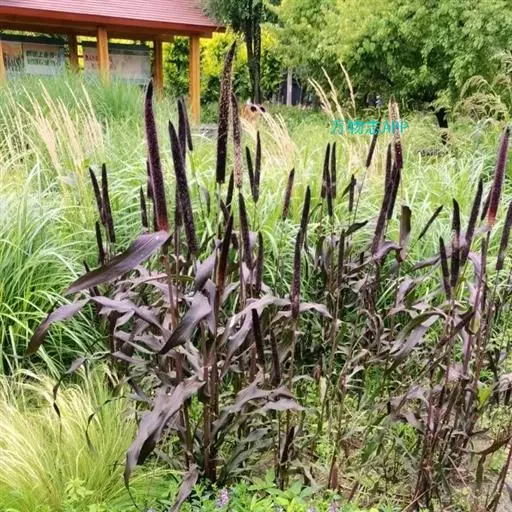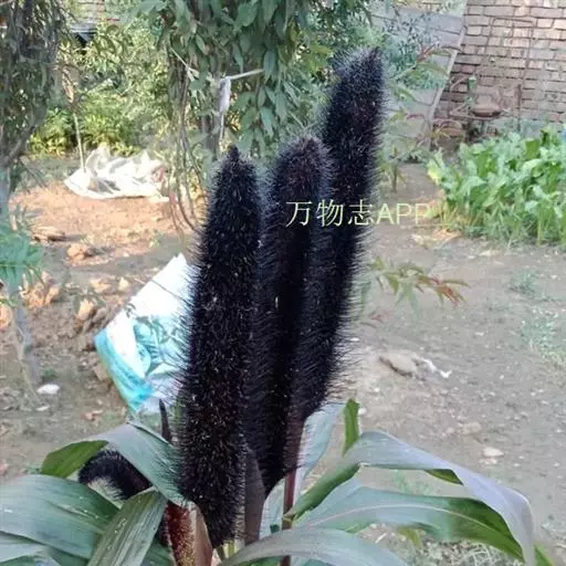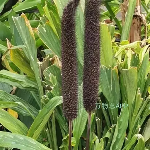 禾本科黍族狼尾草属中的一个种,学名Pennisetumamericana(L.)Leeke,须根系发达,多分布在0-40cm的土层。次生很量很大,植株不易倒伏,总分蘖数可达几十个。茎实髓,圆柱形,粗壮。茎节间光滑,淡绿色,节部有毛,每节上方有浅的槽沟,茎表皮坚硬,有的表面有蜡质。茎中部有分枝,多数可结实。株高一般1.5-3.0m,矮的1m左右,高的可达5m。叶多为披针形,叶缘有细小的锯齿。叶舌是边缘有毛的薄膜。叶鞘裸露,边缘布满白色纤毛。颜色从浅黄色、绿色到紫色。穗较为紧密的圆柱形、圆锥形或纺锤形。穗轴直立,圆形实心。圆锥花序的穗轴周围密生许多小穗,一般1500个左右。基部密生着坚硬的刚毛。小穗由两个小花组成:一个可育,另一个是不完全花。子房倒卵形,光滑。雌蕊一个,雄蕊三个。易脱粒。籽粒形状近似球形,圆锥形或圆柱形。多为灰色、灰褐色,也有紫色和琥珀白色的。千粒重3g左右,高的可达15g。为完全花。花药纵裂,花粉散开。异花授粉的机率很高,一般自然发校率可达50-75%。