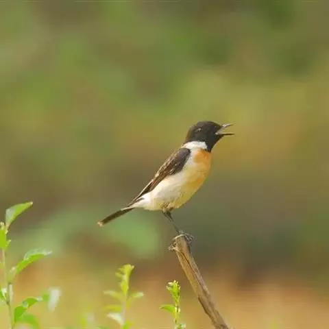 棕脸鹟莺:体长10厘米,是一种色彩亮丽而有特色的莺鸟。头栗色,具黑色侧冠纹。上体绿,腰黄色。下体白,…