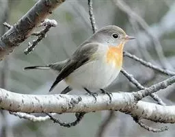 橙胸姬鹟:体长12-16厘米,是一种体型略小的林栖型鹟。尾黑而基部白,上体橄榄褐色,额具一白色横带,…