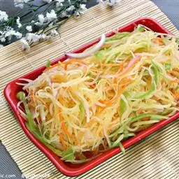 阳泉市所属平定县有道名菜:粉条豆腐丝。这道菜主料是粉条和油豆腐丝,成菜特点是,豆腐丝是炸过的,外脆里嫩,菜看着很温和,没有一点热菜的感觉,但吃起来烫嘴,所以,地道的饭店都会说,我们做得是不冒烟的正宗粉条豆腐丝。此菜是阳泉、晋中一带一般人家红白喜事,请客吃饭都会有的一道传统菜。近些年各饭店推出的深受老百姓喜欢的创新菜--茴子白炒粉条与粉条豆腐丝有异曲同工之妙。
