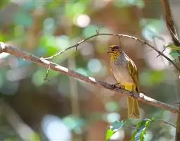 纹喉鹎:体长19厘米,是一种中等体型的偏绿色鹎。特征为头顶、脸颊、颏及喉均具黄色条纹。上体橄榄绿色。…