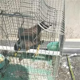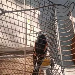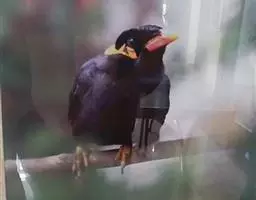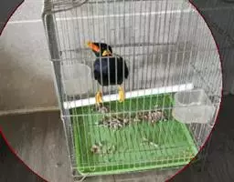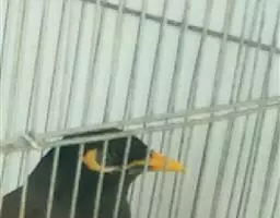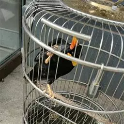 7、鹩哥不应该一直放在笼子里,要让它学会在人手中玩耍,这样就可以向杂技方向发展,而且可以锻炼它过笼的能力,换洗澡笼也方便。