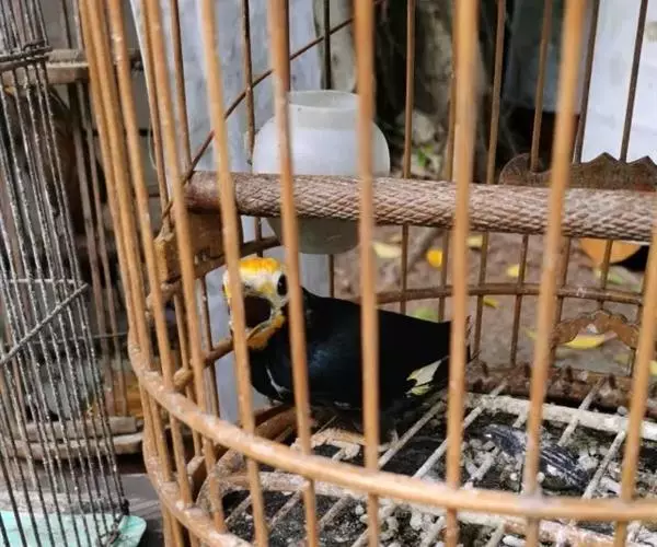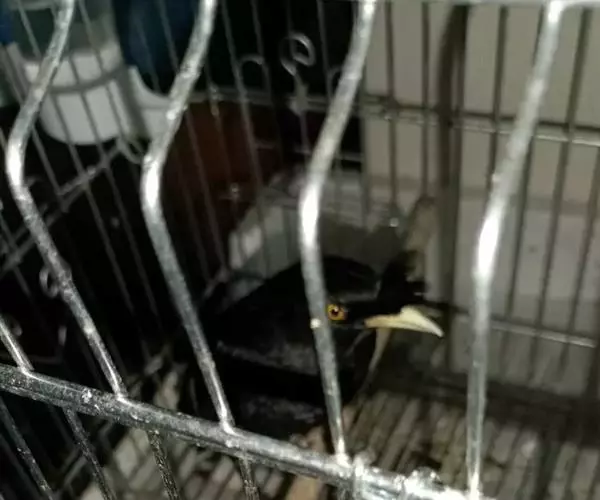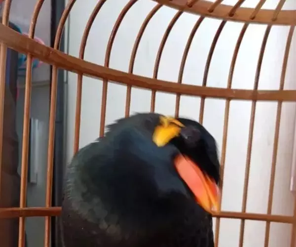 3、挑鹩哥时,用手拍打笼子,不跳,两眼炯炯有神的为好,再捉出来,身上肉不要掉的太多,否则容易夭折,