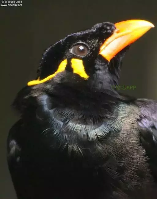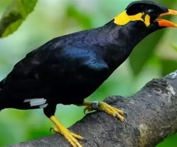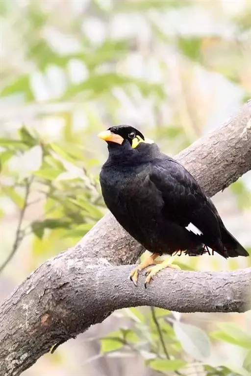 金冠树八哥为椋鸟科树八哥属的鸟类。体长约23厘米,闪辉黑色。特征为具翼斑及颏黄色,脸颊裸露皮肤粉黄色。…