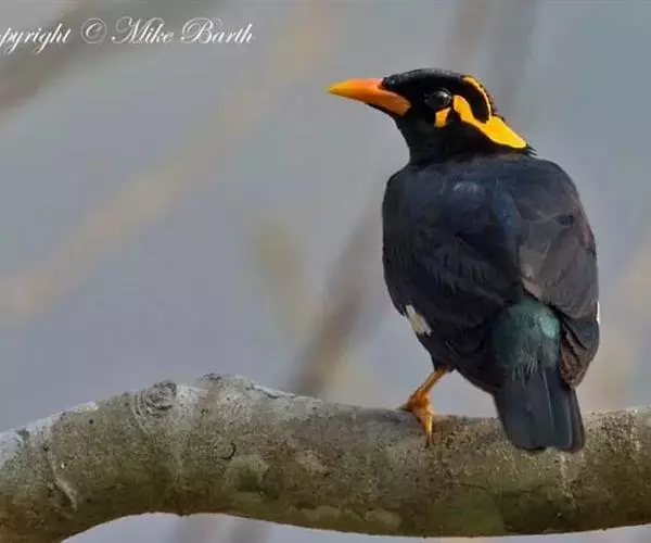 黑冠椋鸟:中等体型的椋鸟,体长21厘米。雄鸟前头为黑色并具金属光泽;头顶、颈项和羽冠亦为黑色;翅及翅上覆羽黑色;尾羽褐色,具白色端斑;上体灰色;下体淡黄褐色。雌鸟形态与雄鸟相似,但羽冠较雄鸟为短。虹膜蓝白或乳黄色;嘴峰铅绿色;跗蹠及爪柠檬黄色。头具黑色羽冠,与其他椋鸟易于区别。主要栖息于开阔落叶阔叶林和灌木林中以及多营巢于树洞中或其他洞穴内。属群鸟共栖。常4-8只结小群活动。鸣声清脆响亮。食物有果实和浆果,偶食花蜜和小型昆虫。分布于印度、中国云南耿马。常见于印度城镇、村庄及铁路沿线。偶见于中国云南西南部和西藏东南部。