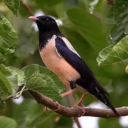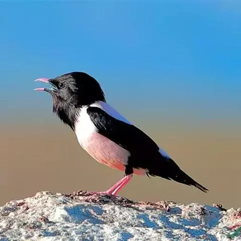 粉红椋鸟:中等体型,成鸟体长19-22厘米,体重60-73克,飞羽、尾羽为亮黑色,雌鸟与雄鸟毛色相似,…