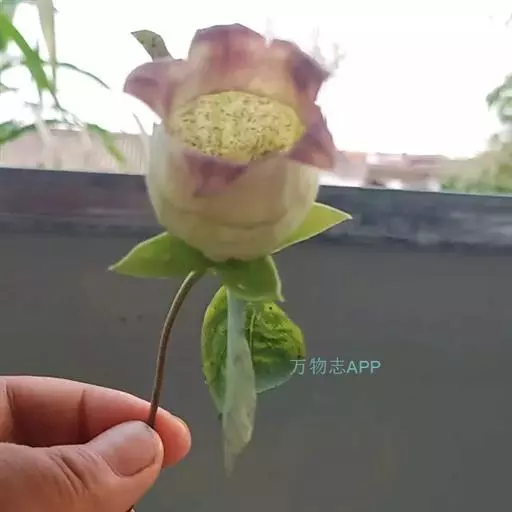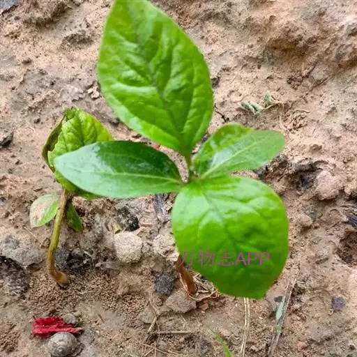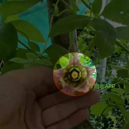 羊乳花 植株全体光滑无毛或茎叶偶疏生柔毛。茎基略近于圆锥状或圆柱状,表面有多数瘤状茎痕,根常肥大呈纺锤状而有少数细小侧根,长约10-20厘米,直径1-6厘米,表面灰黄色,近上部有稀疏环纹,而下部则疏生横长皮孔。茎缠绕,长约1米,直径3-4毫米,常有多数短细分枝,黄绿而微带紫色。叶在主茎上的互生,披针形或菱状狭卵形,细小,长0.8-1.4厘米,宽3-7毫米;在小枝顶端通常2-4叶簇生,而近于对生或轮生状,叶柄短小,长1-5毫米,叶片菱状卵形、狭卵形或椭圆形,长3-10厘米,宽1.3-4.5厘米,顶端尖或钝,基部渐狭,通常全缘或有疏波状锯齿,上面绿色,下面灰绿色,叶脉明显。花单生或对生于小枝顶端;花梗长1-9厘米;花萼贴生至子房中部,筒部半球状,裂片湾缺尖狭,或开花后渐变宽钝,裂片卵状三角形,长1.3-3厘米,宽0.5-1厘米,端尖,全缘;花冠阔钟状,长2-4厘米,直径2-3.5厘米,浅裂,裂片三角状,反卷,长约0.5-1厘米,黄绿色或乳白色内有紫色斑;花盘肉质,深绿色;花丝钻状,基部微扩大,长约4-6毫米,花药3-5毫米;子房下位。蒴果下部半球状,上部有喙,直径约2-2.5厘米。种子多数,卵形,有翼,细小,棕色。花果期7-8月。