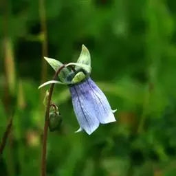 羊乳花,是多年生缠绕藤本。分布于中国东北、华北、华东和中南各省,生长在山坡灌木林下阴湿地区。多年生缠绕草本,根粗壮肥大,倒卵状纺锤形,茎圆形,着生于茎上的叶较小,互生,有短柄。花通常一朵生于枝端;花萼5裂,萼筒与子房结合;花冠蓝绿色或淡黄色,钟状,雄蕊5枝,花丝基部稍膨大;子房下位,3室;花柱短,柱头3裂。蒴果圆锥形。