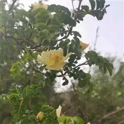 玫瑰:蔷薇科、蔷薇属的灌木;株高达2米;茎粗壮,丛生;小枝密生线毛,针刺和腺毛,有皮刺,淡黄色,…
