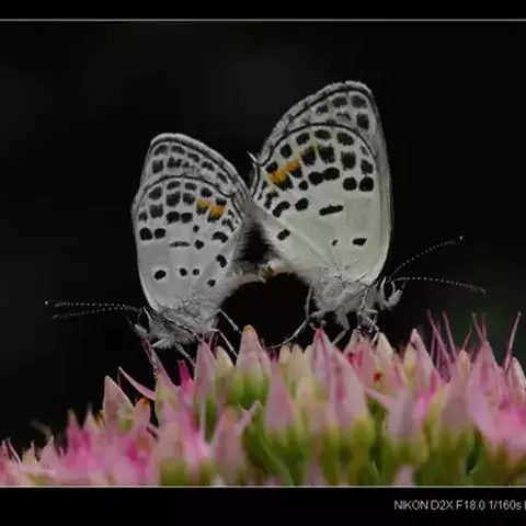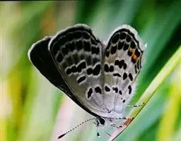 点玄灰蝶 小玄灰蝶的外观特征如下:翅膀正面黑褐色,隐约可见后翅亚外缘有蓝斑一列,另有一条短细尾突。翅膀的反面呈灰白色,缘毛白色。前翅反面外缘线黑色,内有两列黑斑,中室内外有3个黑斑;后翅反面外缘线褐色,内有围绕橙红色的两列黑斑,排成弧形,中室内外也有3个黑斑,而与其他近缘种有着根本区别。点玄灰蝶的生物学特性——独特的藏匿行为的观察与研究。