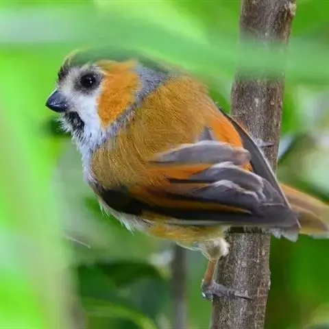 点胸鸦雀是莺科、鸦雀属小型鸟类,体长18-21厘米。头顶至枕橙棕色,嘴橙黄色、短而粗厚,脸皮黄色,…